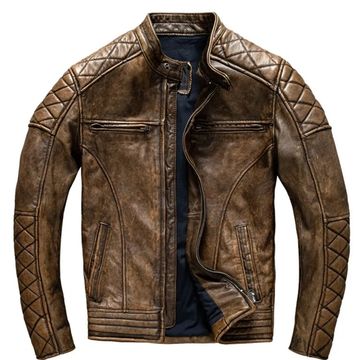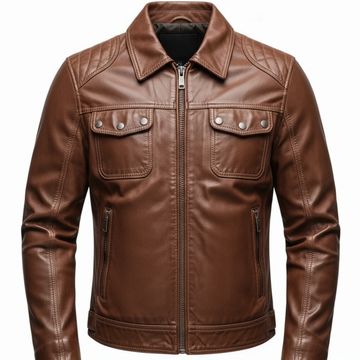 Quilted Shoulders, Soft Feel, Classic Biker Fit - Brown Variant
