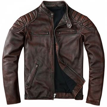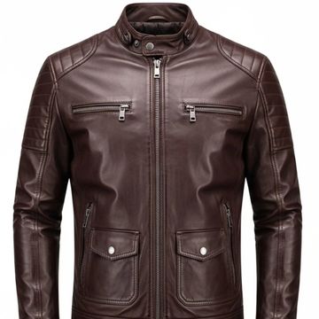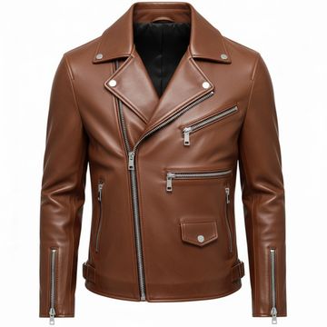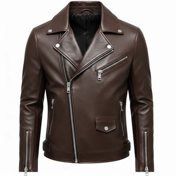 Classic Biker Moto Style with Quilted Shoulders & Metal Zippers - Brown Variant