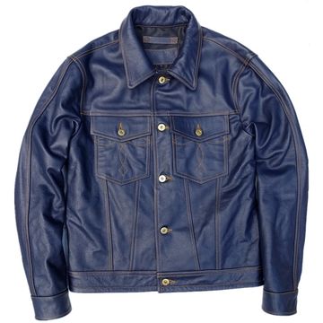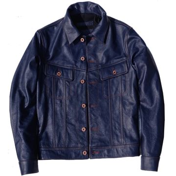 Vintage Western Denim-Cut Motorcycle Outerwear - Blue Variant