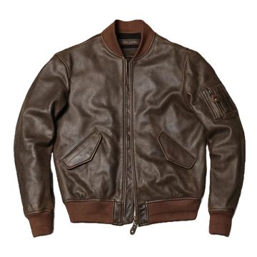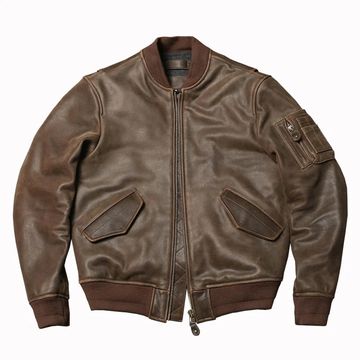 Classic Aviator Flight Style with Ribbed Trim Outerwear - Brown Variant