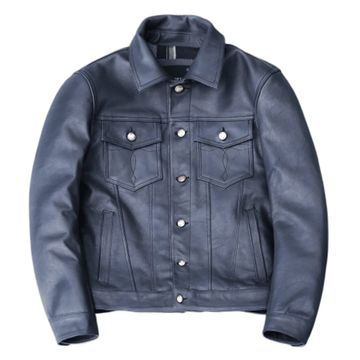 Vintage Retro Denim-Cut Moto Streetwear Rider Outerwear - Dark Blue Variant