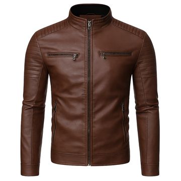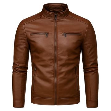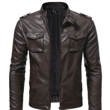 Classic Stand Collar Moto Outerwear - Brown Variant