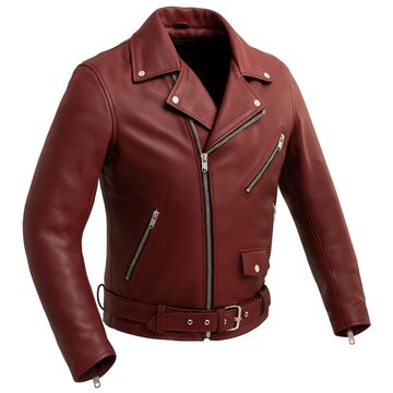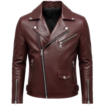 Asymmetrical Motorcycle Outerwear with Metal Hardware - Maroon Variant
