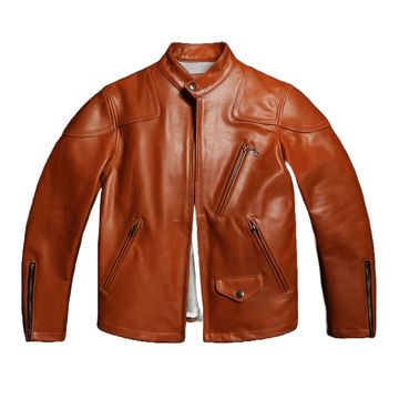 Vintage Motorcycle Military Stand Collar Heritage Outerwear - Orange Variant
