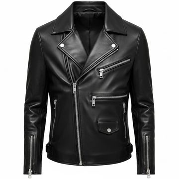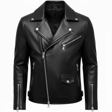Black Classic Biker Moto Style with Quilted Shoulders & Metal Zippers - Black Variant